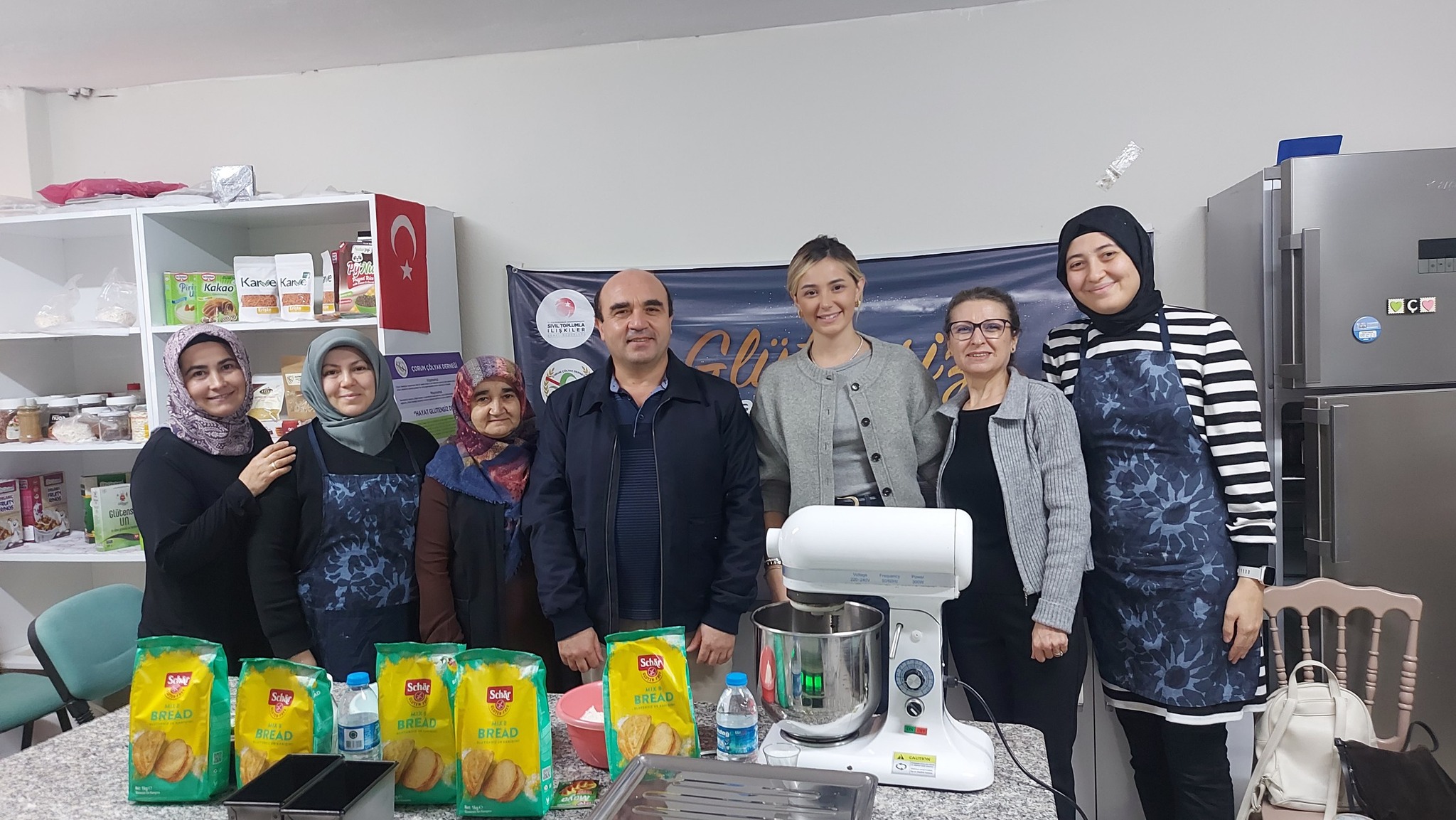 GLÜTENSİZ EKMEK-SİMİT İMALATINDA DR. SCHÄR DESTEĞİ Derneğimizin girişimleriyle, dünyanın önde gelen glütensiz ürün markalarından Dr. Schär, Çorum’da glütensiz ekmek imalatına yönelik kapsamlı bir Workshop gerçekleştirdi. Dr. Schär Glütensiz Un firmasının uzman diyetisyeni Dilara Demiran’ın önderliğinde perşembe günü düzenlenen etkinlik, glütensiz ekmek üretim çalışmalarımız için büyük bir umut kaynağı oldu. Yönetim kurulu üyelerimiz, mutfağımızın glütensiz ustası Deniz Özbakır ve dernek üyelerimizin katılımıyla gerçekleştirilen workshop’ta; glütensiz ekmek üretim sürecinin bilimsel temelleri, un karışımlarının doğru kullanımı, çapraz bulaşmanın önlenmesi ve üretim hijyeni detaylı şekilde ele alındı. Ayrıca Çorum Belediyesi ve İl Özel İdaresi’nin…